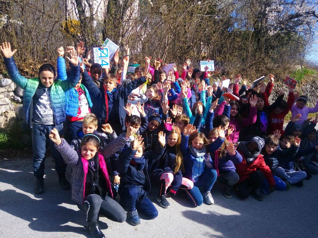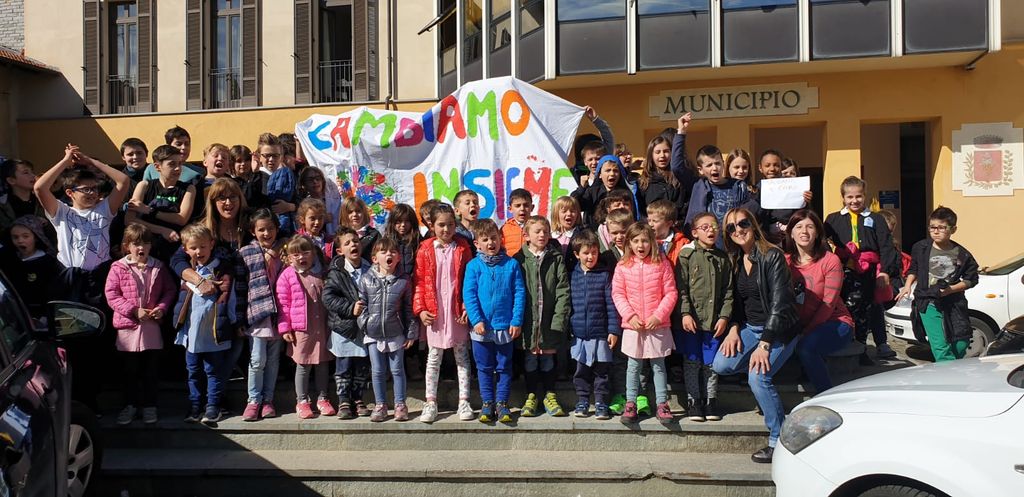 Per le vie dei paesi, i bambini hanno marciato con sfilate silenziose, ora raccogliendo i rifiuti trovati per strada, ora lasciando bigliettini e cartelloni con parole di bontà e rispetto verso l’ambiente. Le piazze hanno visto gli alunni fermarsi, per esporre gli elaborati nati dalle riflessioni in classe, per leggere poesie e filastrocche da essi stessi composte, o per inscenare momenti di danza e gioco. I giovani attivisti, tutti uniti verso gli stessi ideali, si sono posizionati in cerchio tenendosi per mano, per riproporre la forma della Terra, e hanno poi sollevato teli leggeri e colorati, per richiamare le splendide tonalità delle bellezze naturali che ancora non sono contaminate dall’uomo. La protesta è avvenuta anche in forma sonora: gli alunni hanno cantato in coro per il clima, sulle note del brano “Bella Ciao”, che, rivisitato nel testo, è divenuto inno per l’ambiente. La manifestazione ha pure raggiunto il Municipio di Cervasca e Vignolo, dove gli allievi hanno portato la loro protesta e la loro richiesta di aiuto, indossando pettorine realizzate con materiali interamente riciclati.