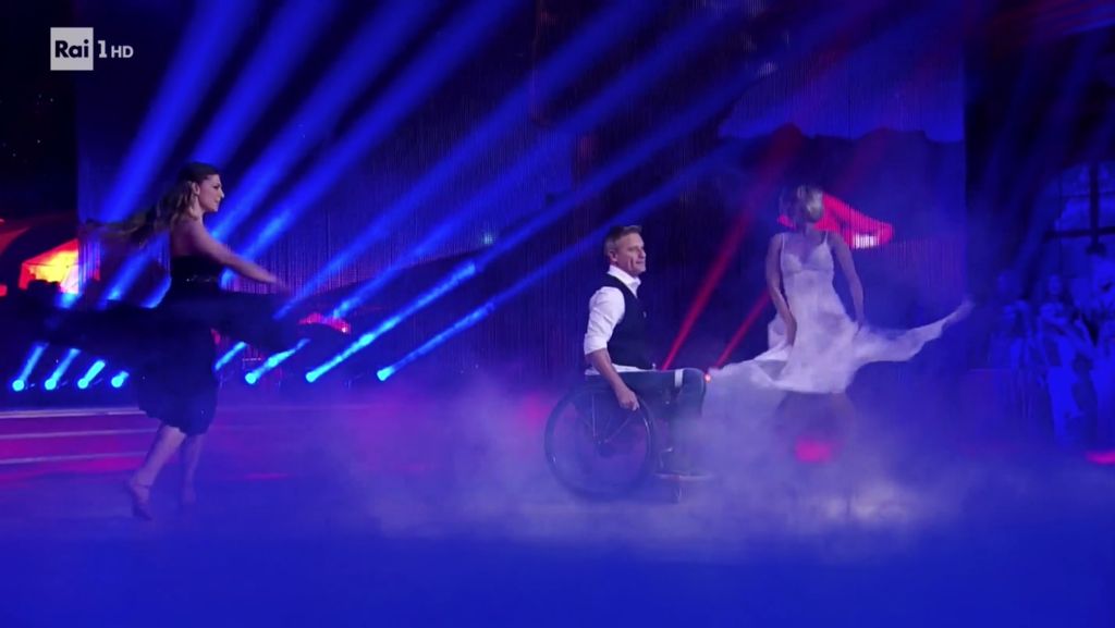 Sulle note di “All By Myself” ha danzato sulla sedia a rotelle accompagnato dalle due ballerine professioniste Francesca Campobassi e Maria Ermachkova.