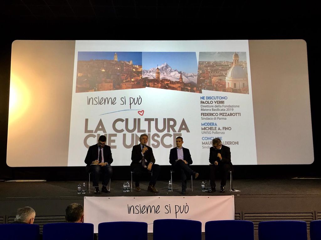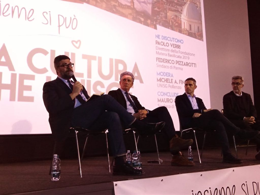 Due gli ospiti di eccezione, Paolo Verri e Federico Pizzarotti, stimolati da Michele Antonio Fino a raccontare nascita e processi relativi ai progetti Matera Capitale Europea della Cultura 2019 e Parma Capitale Italiana della Cultura 2020.