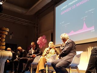 Una sfilata di vecchie glorie del ciclismo italiano per presentare ufficialmente la 12^ tappa del Giro d'Italia 2019: la Cuneo-Pinerolo che si correrà giovedì 23 maggio.