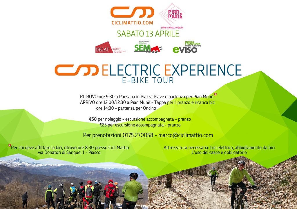 In collaborazione con Cicli Mattio di Piasco, si svolgerà infatti un tour in e-bike a Pian Muné.