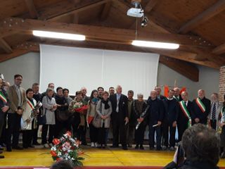 La pioggia ha leggermente modificato i tempi del programma della manifestazione: dopo la Santa Messa delle ore 10, ci si è trasferiti nel salone polivalente per la parte istituzionale della cerimonia.