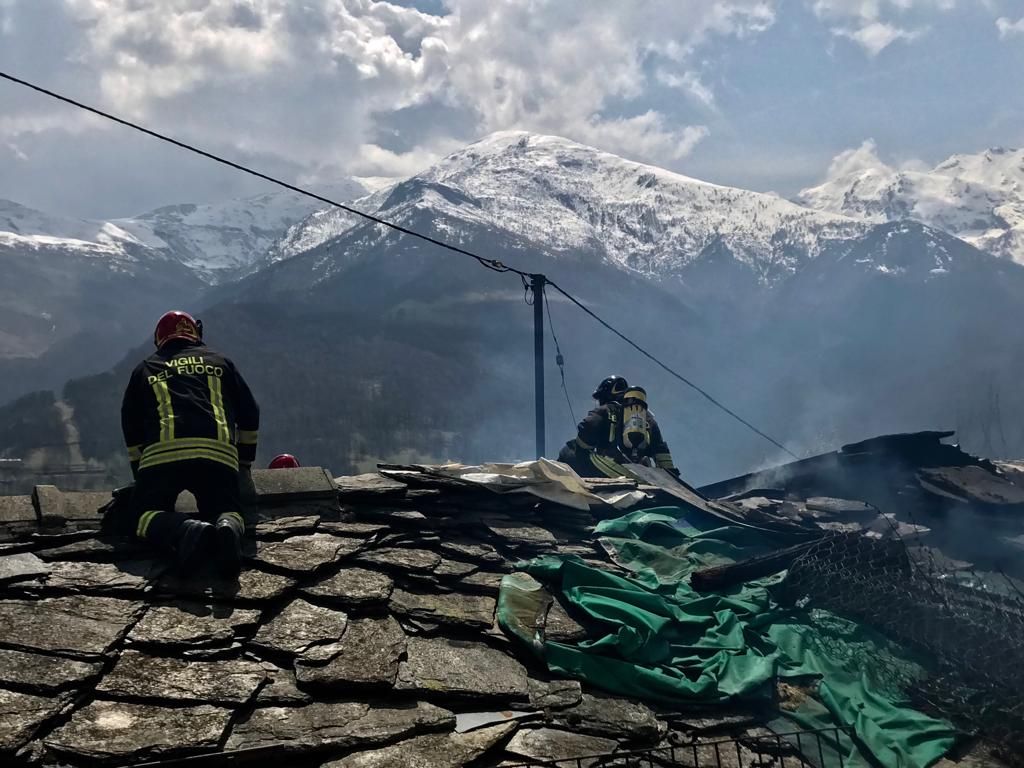 In fiamme una casa a Oncino: al lavoro diverse squadre dei Vigili del fuoco