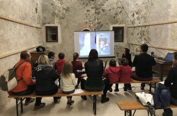 Filo conduttore di tutte le attività è il concetto di storia e, soprattutto, l’idea che le storie non sono solo da ascoltare, ma anche da vivere: i partecipanti vengono dunque condotti a impersonare figure via via differenti, per poi addentrarsi negli ambienti attivando tutti i sensi, lasciandosi trasportare dalla narrazione, per comprendere significati e insegnamenti, ma non solo… si danza, si canta, si dipinge, si costruisce e ci si porta a casa una piccola ricchezza. Un’esperienza che assume un valore particolare perché vissuta abbracciati dalle mura di un forte che di storia ne è intriso e che continua a raccontarne, ai grandi come ai piccini. La visita guidata che precede l’attività, anch’essa “a misura” di famiglia, accompagna proprio alla scoperta della storia e delle curiosità di questo straordinario e affascinante luogo. Lungo un itinerario segnato dalla presenza delle sagome del Sergente colombo del Fortino “Tino”, mascotte che rimanda a una delle antiche funzioni della struttura – la colombaia militare -, si percorrono gli stessi camminamenti un tempo calpestati dagli scarponi dei soldati e si scoprono gli angoli più segreti di questo baluardo posto a guardia delle Alpi.