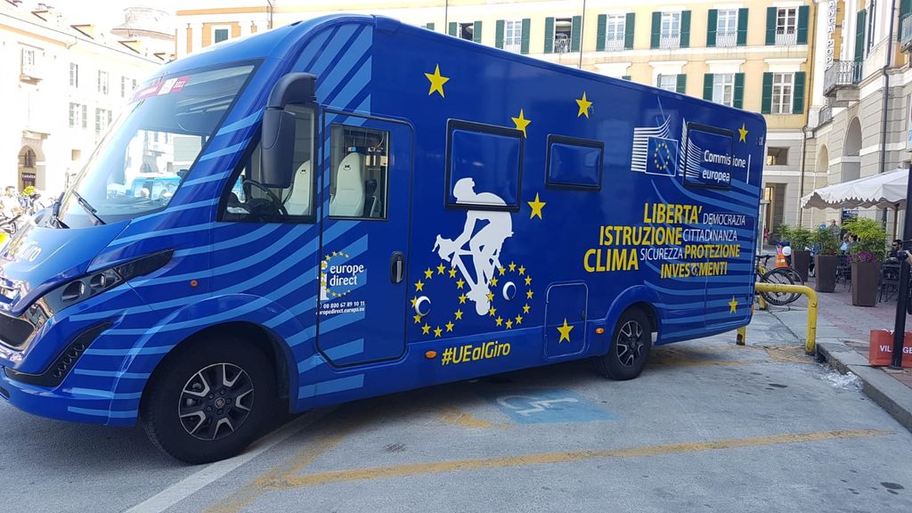 Giovedì 23 maggio il camper blu della Commissione Europea era parcheggiato in piazza Galimberti a Cuneo per poi partire in coda al "serpentone" della carovana che segue il Giro d’Italia. Obiettivo: informare e sensibilizzare i cittadini sulle politiche europee dedicate all'ambiente, allo sport, alla salute, alla mobilità sostenibile e alla sicurezza alimentare.
