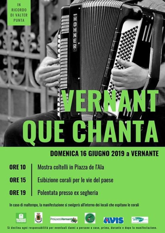“Vernant que chanta” nasce nel 2010 per iniziativa della consulta giovanile, con l’intento di dedicare un’intera giornata ai canti popolari e mantenere vive le antiche tradizioni.