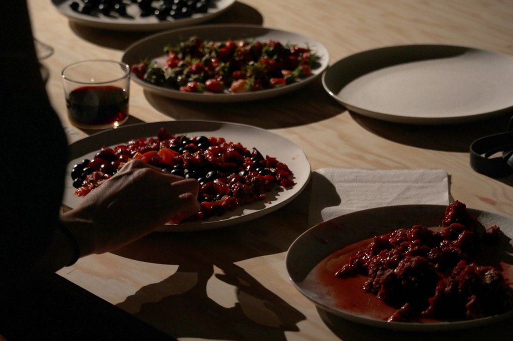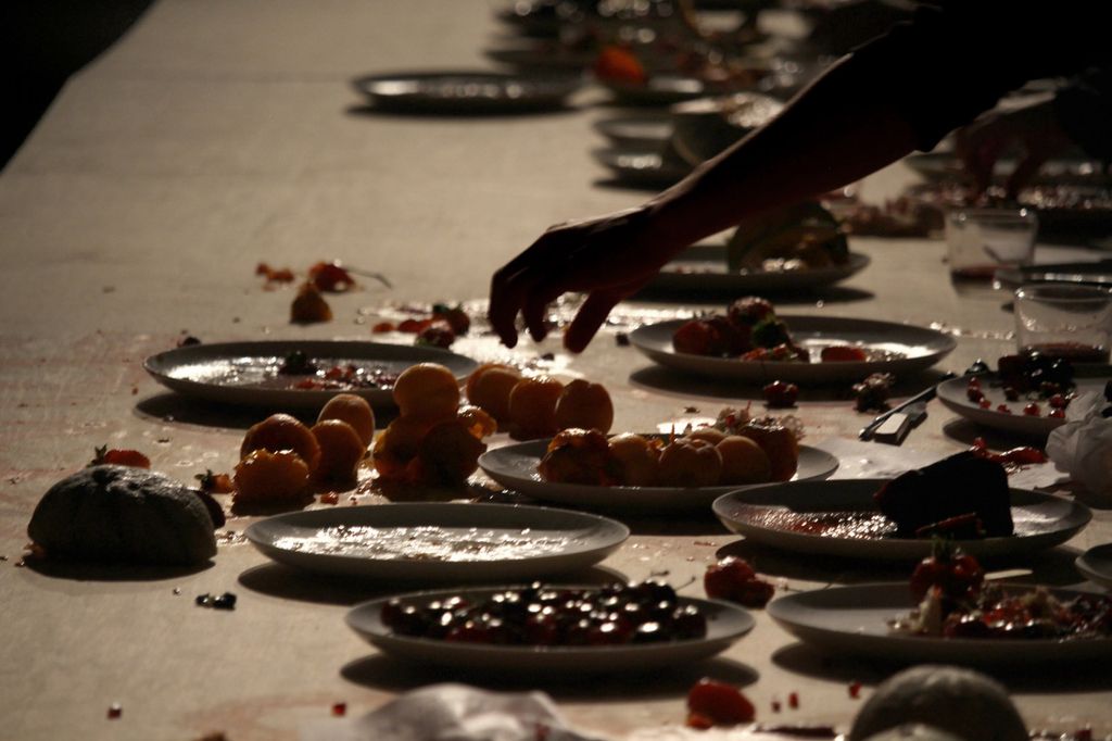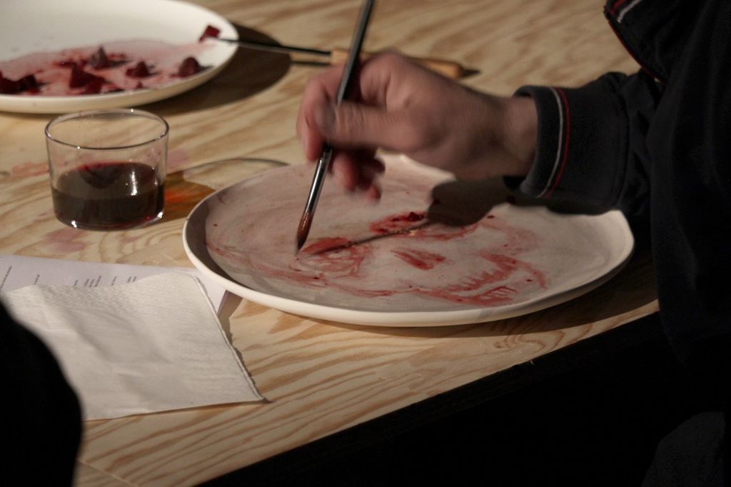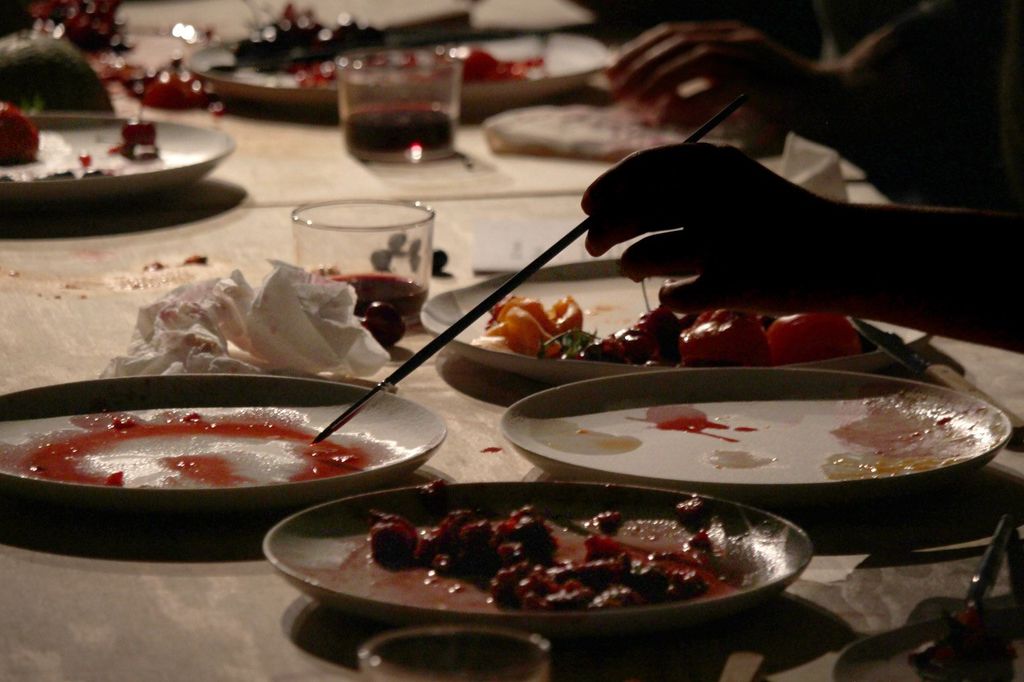 La performance si svolge sotto forma di un banchetto in cui alcuni noti artisti, che operano nel territorio piemontese, sono invitati a sperimentare gusti e colori degli avanzi dei mercati cittadini lasciando tracce, segni e disegni su piatti di ceramica e porcellana non verniciati creati da Hilario Isola per la performance.