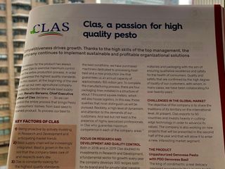 Presente, presso l’area dedicata alla Clas e ai prodotti di chiara e importante impronta ligure, il direttore generale Massimo Bianchi, che commenta: “l’export della Clas si attesta su circa 50 Paesi al mondo e continua ad essere in crescita. Per la nostra azienda il mercato degli Stati Uniti e quello del Canada continua a rimanere importantissimo, rappresentando circa il 10% del nostro fatturato”.