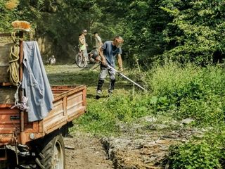 Qui, dopo che nella giornata di venerdì il Comune ha portato a termine un primo intervento di pulizia con l’ausilio di una trincia, alcuni residenti si sono armati di decespugliatori, soffiatori, pale e rastrelli e hanno iniziato a ripulire le banchine a lato della strada comunale che conduce alla loro borgata.