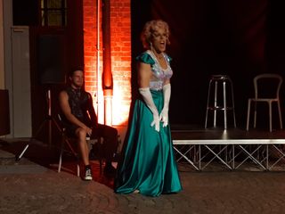 Servono 3 ore a Riccardo Massidda per trasformarsi in Ava Hangar, con una cura maniacale per i costumi, la parrucca, il trucco che non scivola mai nella macchietta. Sul palco poi, Ava coinvolge il suo pubblico, lo fa ridere, ma arriva, puntuale, sul climax della risata, anche la battuta pungente, quella che fa riflettere che dà una sferzata alla parte più bigotta della società.