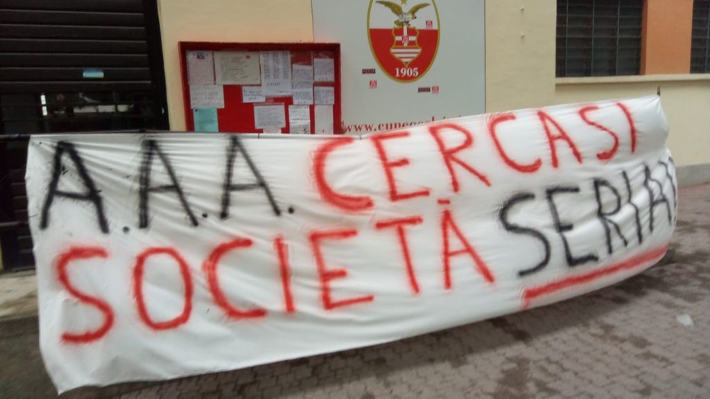 "A.A.A. Cercasi società seria". Recita così lo striscione esposto di fronte allo stadio Flli Paschiero dal gruppo Fedelissimi nel tentativo di focalizzare l'attenzione generale sulle vicende dell'AC Cuneo 1905.