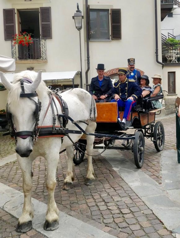 A bordo di un calesse trainato da un bianco cavallo Vittorio Emanuele II, accompagnato dalla “bela Rosin” e dalla sua corte sono intervenuti a “Un pranzo da Re”, manifestazione alla sua prima edizione curata dall’associazione Amici di Valcasotto.