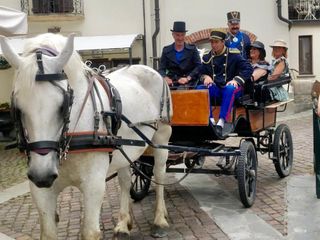 A bordo di un calesse trainato da un bianco cavallo Vittorio Emanuele II, accompagnato dalla “bela Rosin” e dalla sua corte sono intervenuti a “Un pranzo da Re”, manifestazione alla sua prima edizione curata dall’associazione Amici di Valcasotto.