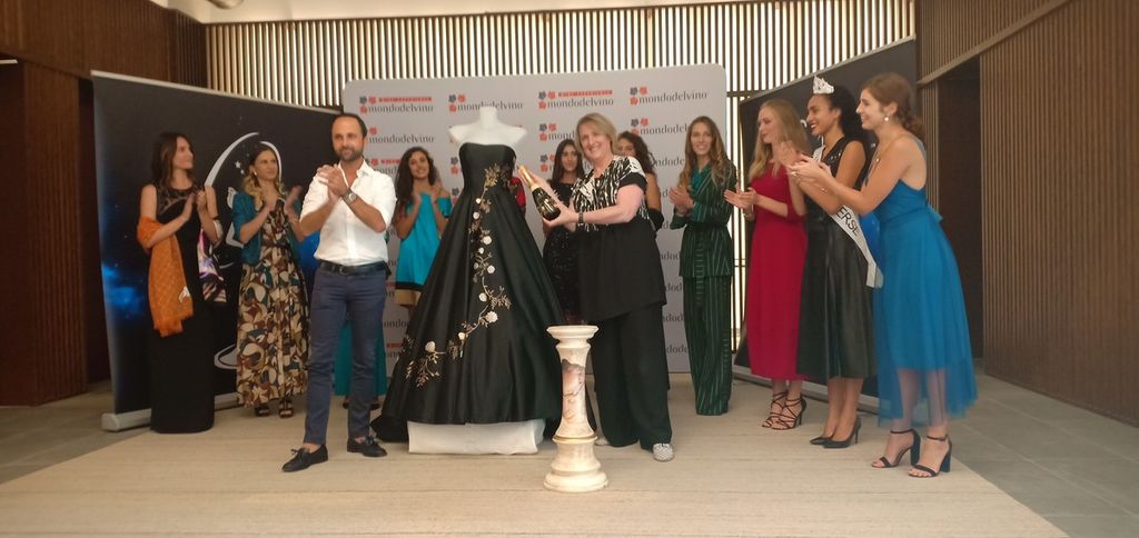Durante il pomeriggio è stato presentato l’abito della Stilista Bruna Couture realizzato per la Finale Nazionale di Roma del concorso disegnato seguendo lo stile delle bottiglie Acquesi, Brand della Cantina Cuvage di Mondodelvino.