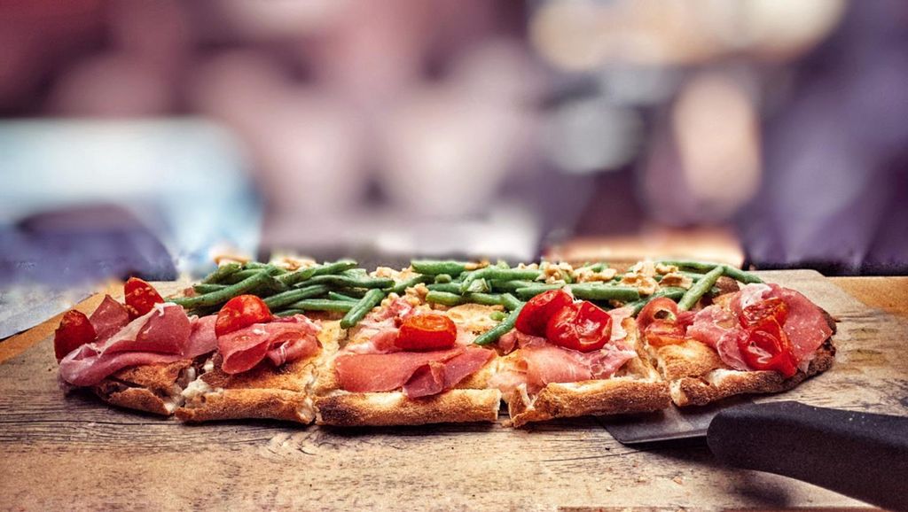 Per la sera, oltre alla selezione di aperitivi, Dutt’ost ha creato un menù “LaPinsa e la Pala romana”