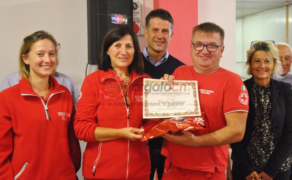 Poi, le premiazioni dei volontari benemeriti. Diploma e medaglia per Luca Boaglio e Cinzia Carignano, che hanno raggiunto 10 anni di servizio e per Elena Salvai, Mauro Galliano, Alessandra Clapier, Domenica Bertolino, Giorgio Re e Flavio Peirone, che da 25 anni – praticamente dalla fondazione – prestano servizio in Croce rossa a Barge.