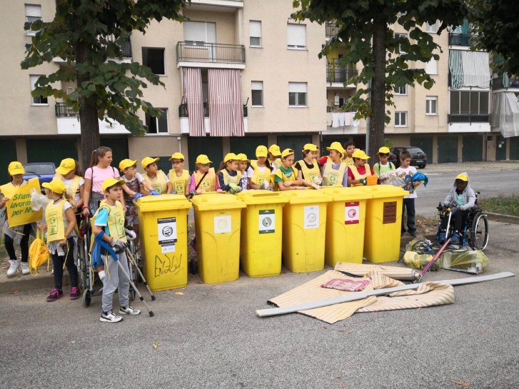 Nel giorno del terzo sciopero globale per il clima di “Fridays for future” e in occasione dell’iniziativa “Puliamo il Mondo”, a Bra una settantina di ragazzi delle classi quinte della Scuola primaria “Edoardo Mosca” ha contribuito – con docenti, amministratori e volontari – a una speciale eco-pulizia nel quartiere Bescurone. Dalle 10 alle 12 di venerdì 27 settembre, nell’area verde di viale Industria, in via Solferino e in piazza Fenoglio sono stati raccolti rifiuti differenziati (carta, plastica, vetro, lattine, organico e indifferenziato) con attività coordinate dalle insegnati e da personale dell'Ufficio Ambiente del Comune di Bra.