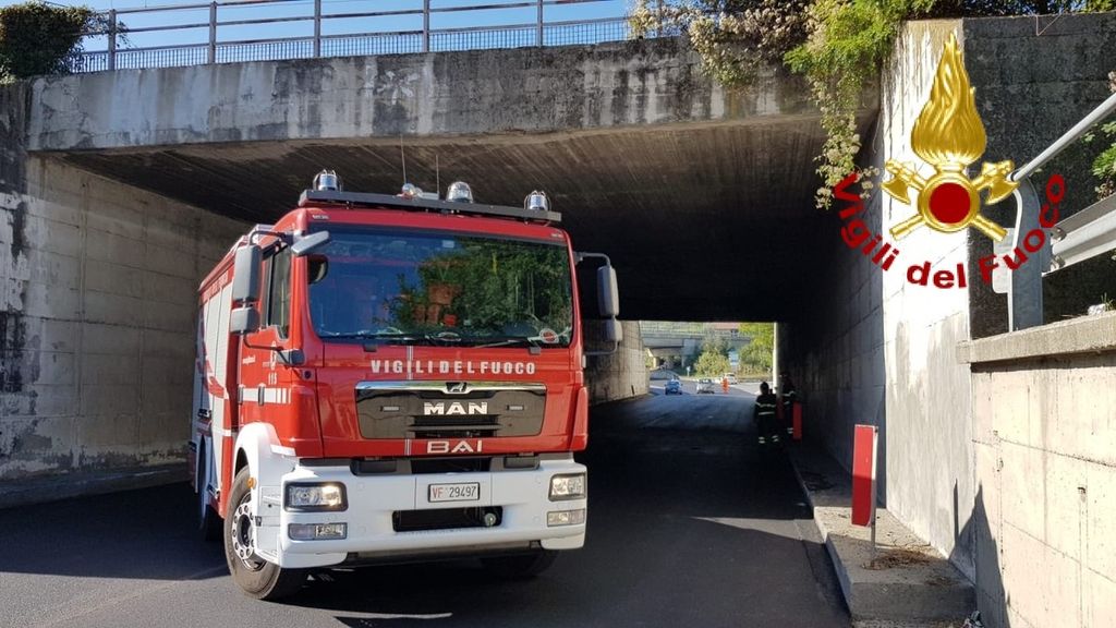 E' successo attorno alle 9 di oggi 5 ottobre. Sul posto vigili del fuoco, carabinieri, polizia locale, tecnici dell'Anas e tecnici delle ferrovie. Nessun veicolo coinvolto (FOTO)