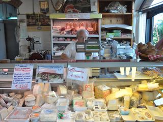 Una bella insegna all’esterno del negozio colpisce: “agnolotti e salsiccia di produzione propria”. Appena entrati, agli occhi si presenta come un piccolo ma ben fornito supermercato di paese, con scaffali ricchi di giornali e riviste e prodotti alimentari di ogni genere, ma al fondo del corridoio, si capisce che non si tratta di una semplice edicola, né di un generico negozio.