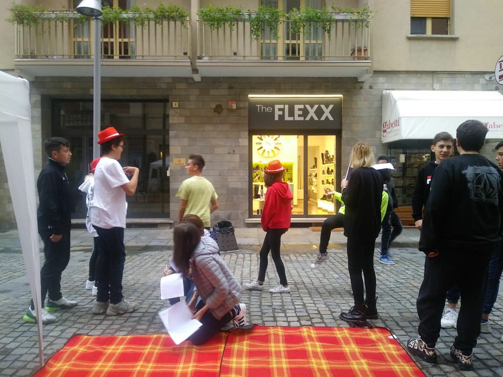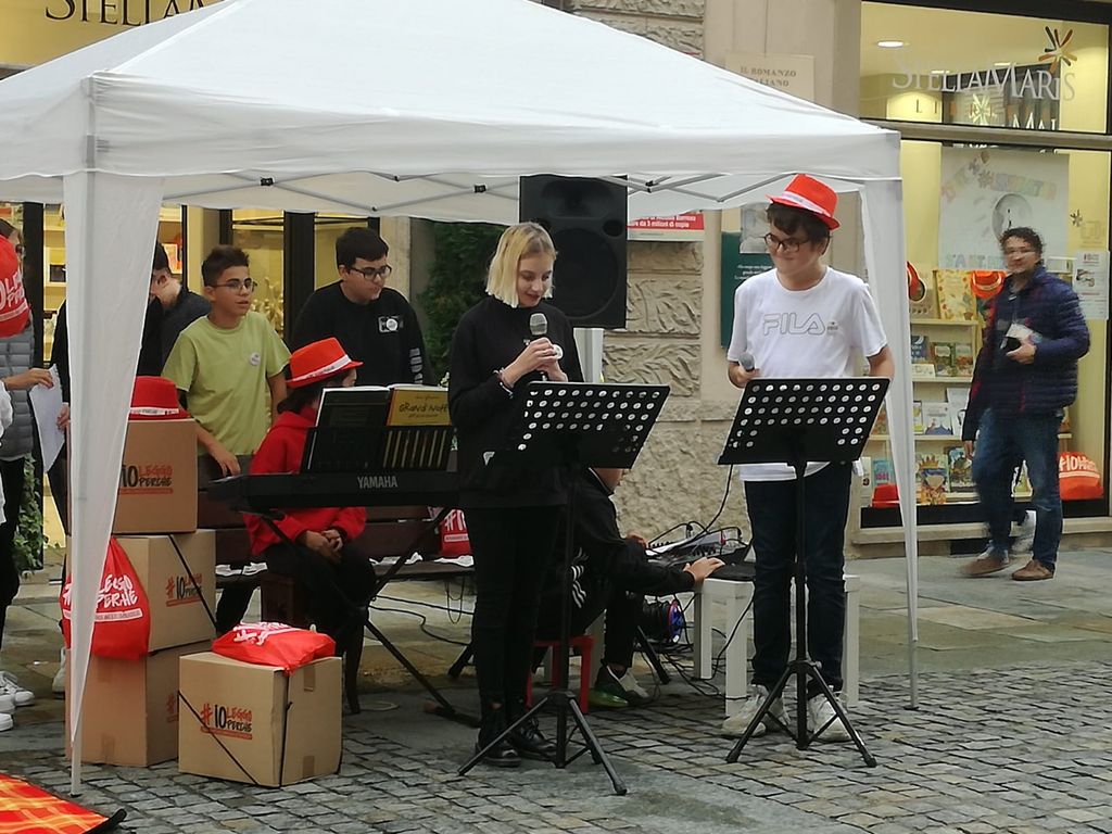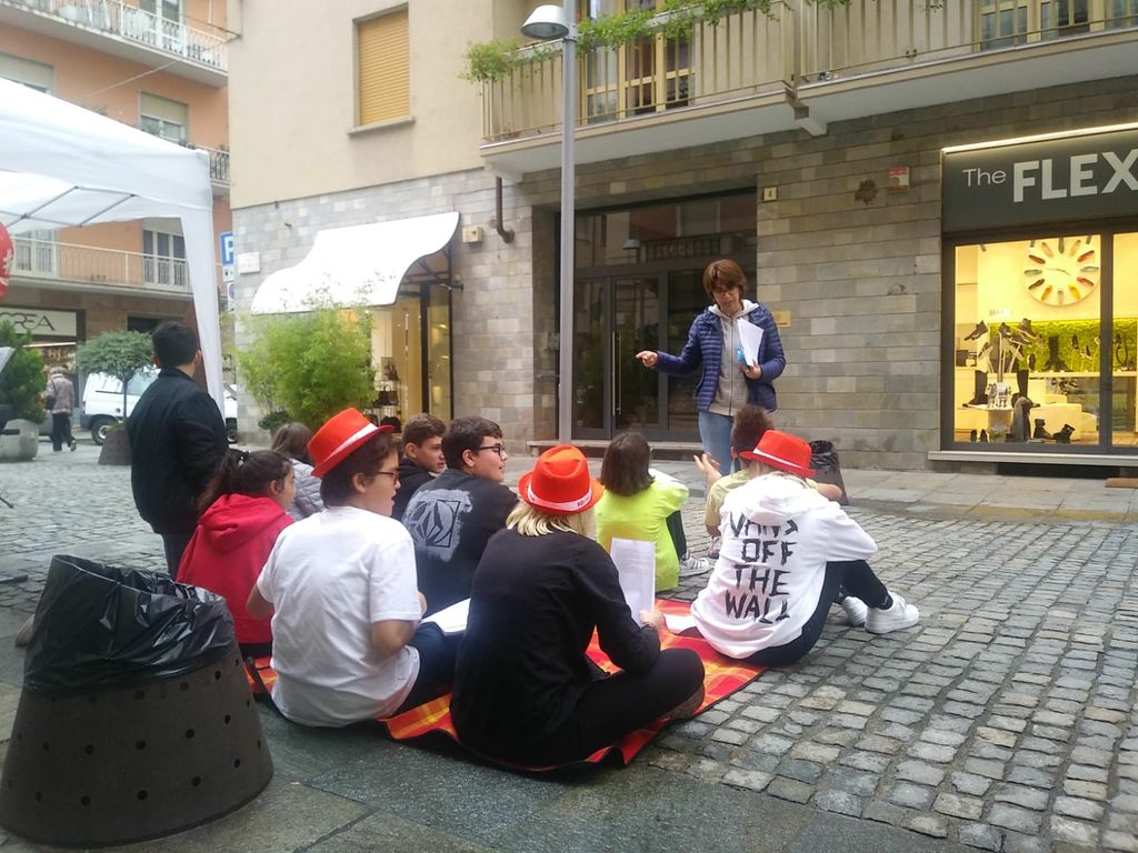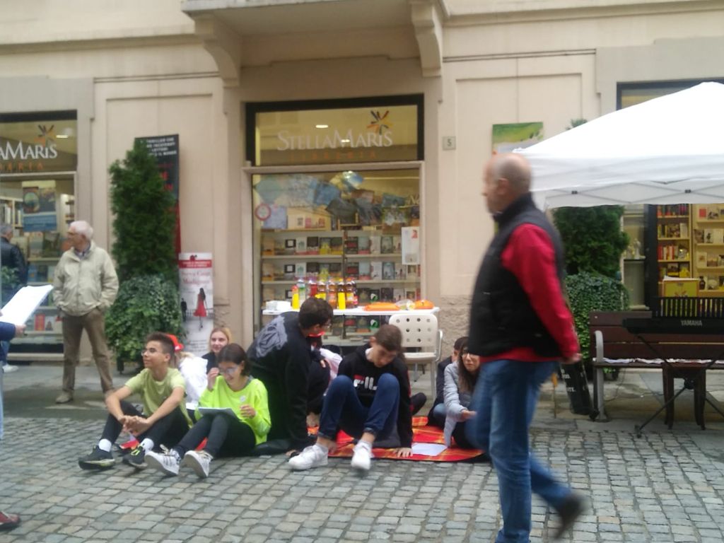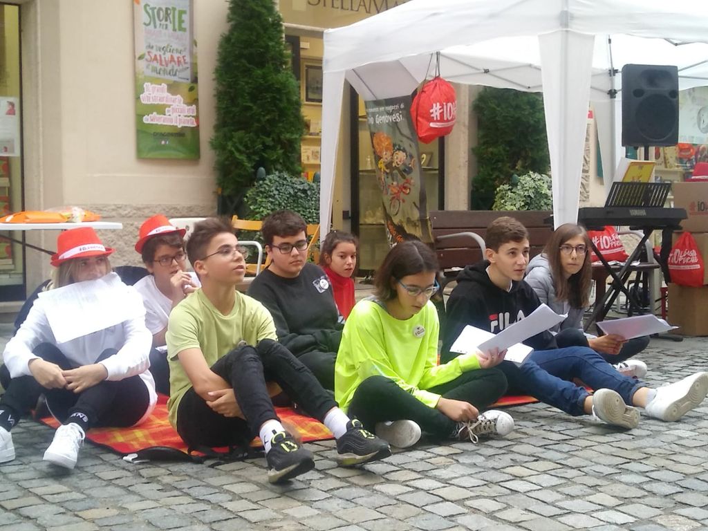 Nel pomeriggio di sabato 19 ottobre, infatti, gli alunni della 3^ media "Andrea Fiore" hanno installato un gazebo poco fuori l'entrata della libreria e animato il passaggio con letture e musica.