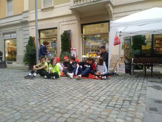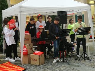 Nel pomeriggio di sabato 19 ottobre, infatti, gli alunni della 3^ media "Andrea Fiore" hanno installato un gazebo poco fuori l'entrata della libreria e animato il passaggio con letture e musica.