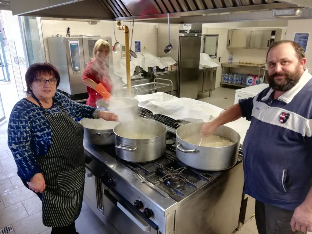 Si è cucinato nei locali associativi, nella scuola materna e nella casa di riposo San Giuseppe.