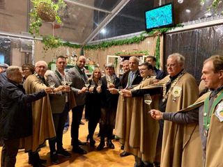 Il ramo di nocciolo del gran maestro Ginetto Pellerino è così sceso sulla spalla di Mauro Carbone, direttore dell'Ente Turismo Langhe Monferrato Roero, di Giandomenico Genta, presidente della Fondazione Cassa di Risparmio di Cuneo, e Sergio Lasagna, presidente del Consorzio per la valorizzazione e la tutela della Nocciola Piemonte Igp.