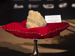 Ai 25.500 euro assommati dalle offerte di quanti si sono aggiudicati i primi tre lotti battuti nel maniero simbolo Unesco da Enzo Iachetti e Caterina Balivo (assegnati rispettivamente a 6mila, 7.500 e 12mila euro) si sono aggiunti i ben 120mila euro coi quali un ancora sconosciuto offerente collegato dal ristorante "Otto e Mezzo Bombana" di Hong Kong si è aggiudicato il magnifico esemplare da oltre un chilogrammo conteso a colpi di rilanci dalle diverse piazze collegate per l’ultima spettacolare contesa della giornata.