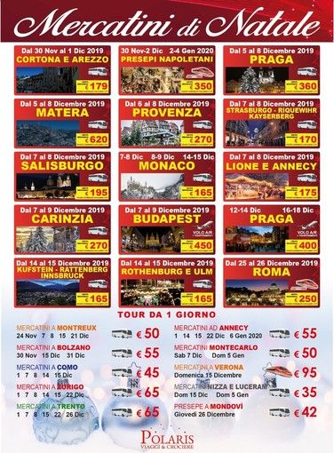 Il conto alla rovescia in vista dei 1.001 appuntamenti della Polaris Viaggi dedicato ai Mercatini di Natale volge orma al termine (i dettagli sono nella foto a corredo).