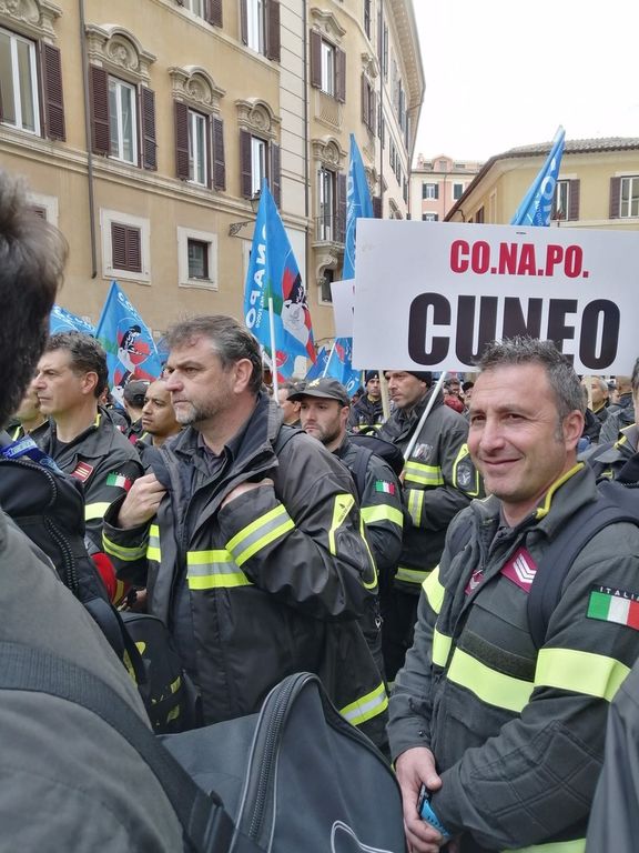 "La vita che rischiamo ogni giorno non vale meno di quella degli appartenenti agli altri Corpi dello Stato ‐ sottolineano i rappresentanti del sindacato Conapo dei Vigili del Fuoco. Siamo impiegati nei servizi di pronto intervento dal giorno dell'assunzione sino al giorno della pensione, un servizio operativo che non ha eguali nello Stato, eppure ‐ spiega Christian Molfetta, segretario provinciale del Conapo di Cuneo ‐ siamo il Corpo più bistrattato, nonostante mettiamo costantemente a disposizione, come e più degli altri corpi, la nostra vita per la sicurezza dei cittadini”.