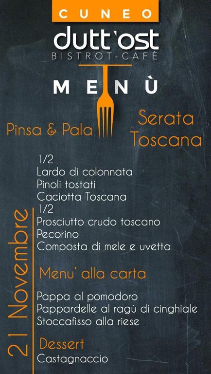Si consiglia la prenotazione chiamando il Bistrot Cafè di Cuneo o Centallo.