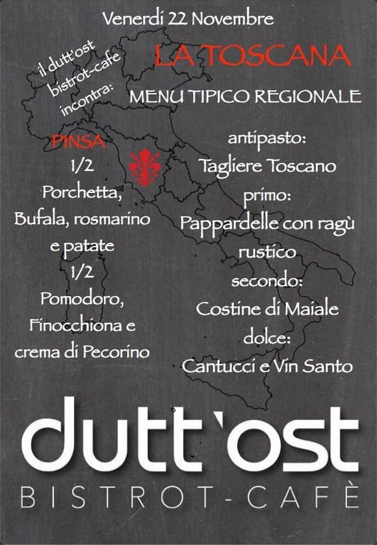 Appuntamento per giovedì 21 novembre presso il Bistrot Cafè Dutt’ost di Cuneo e venerdì 22 novembre, presso il Bistrot Cafè Dutt’ost di Centallo.