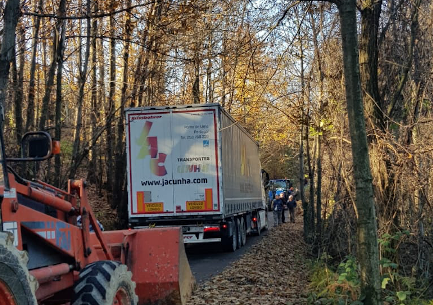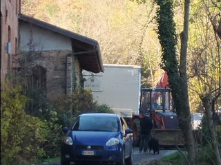 Senza carico il camion ha potuto cominciare a manovrare in collina nei pressi dell’agriturismo Baco da Seta, ma al momento non ha ancora cominciato la discesa per cui sarà necessaria prudenza vista la ristrettezza della strada