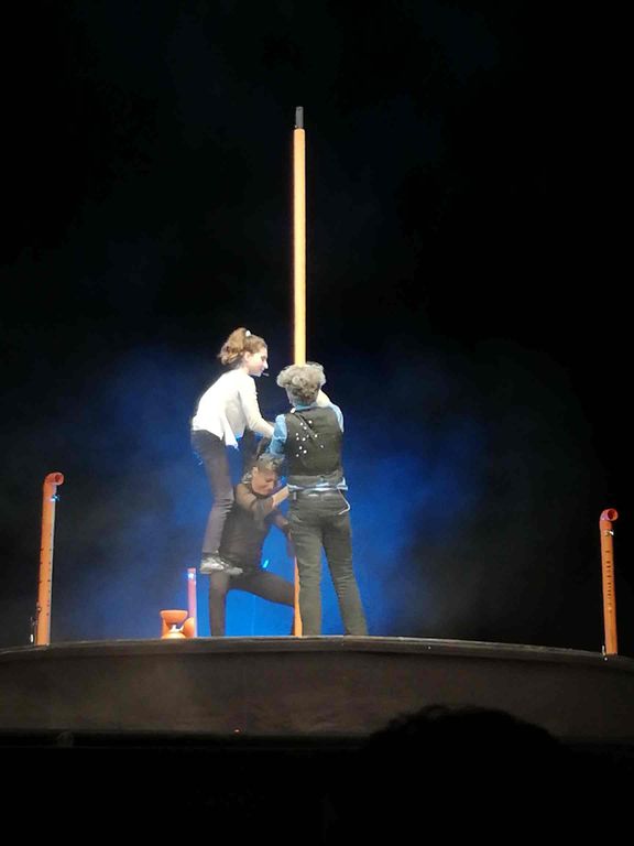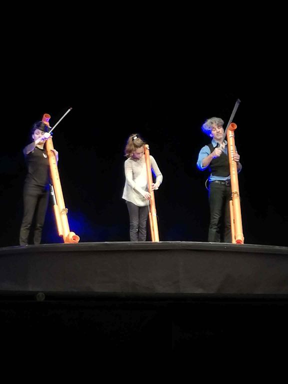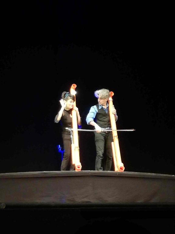 “Sonata per tubi” era andato in scena in prima assoluta lo scorso luglio a Fossano nel corso del Festival Mirabilia e rappresenta un passo avanti per la compagnia. Innanzitutto perché è ormai ufficiale che la compagnia abbia ormai un elemento fondamentale in più: la giovanissima Marilù D’Andria, figlia di Nando e Maila, che, nonostante abbia solo 12 anni ha ereditato i talenti dei genitori, sia musicali, sia acrobatici, arricchendoli di una rara presenza scenica.