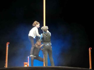 Lo spettacolo, che ha il sostegno del MiBac ed è stato creato proprio con il supporto delle residenze artistiche di Mirabilia, oltre che di Teatro dell’Argine e di CLAPS, riesce a mantenersi in perfetto equilibrio tra il concerto, sebbene stravagante, la comicità, mai ridanciana, e la componente circense con la parte acrobatica e la giocoleria.