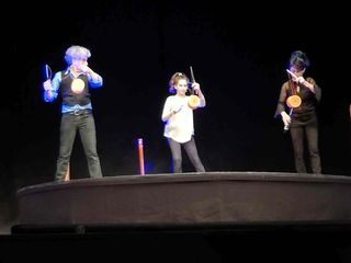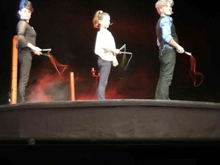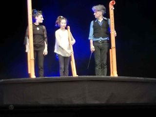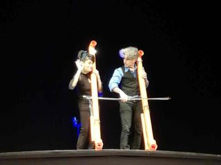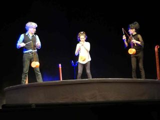 “Sonata per tubi” era andato in scena in prima assoluta lo scorso luglio a Fossano nel corso del Festival Mirabilia e rappresenta un passo avanti per la compagnia. Innanzitutto perché è ormai ufficiale che la compagnia abbia ormai un elemento fondamentale in più: la giovanissima Marilù D’Andria, figlia di Nando e Maila, che, nonostante abbia solo 12 anni ha ereditato i talenti dei genitori, sia musicali, sia acrobatici, arricchendoli di una rara presenza scenica.