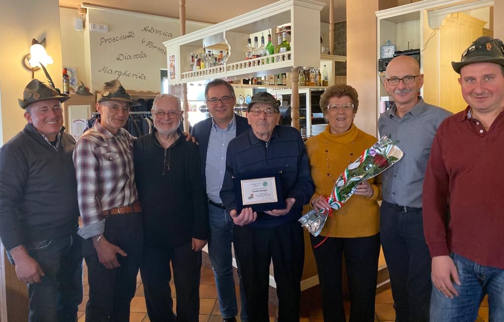 Ieri, domenica 8 dicembre, in occasione nel ritrovo di fine anno del gruppo di Busca dell'Ana (Associzione nazionale Alpini), dopo la messa ai Cappuccini celebrata da padre Ermanno Giraudo, la benedizione del monumento agli Alpini e il pranzo sociale, il sindaco, Marco Gallo, e l'assessore al Volontariato, Ezio Donadio, hanno consegnato una targa a Giuseppe Cavallo presidente onorario del gruppo.