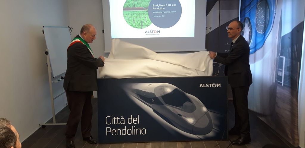 Consegnata dall’Alstom di Savigliano la nuova targa di “Savigliano città del Pendolino”. Il cerimonia di consegna del riconoscimento si è svolta oggi, giovedì 13 dicembre, presso il Museo della Fabbrica del sito Alstom di Savigiano.