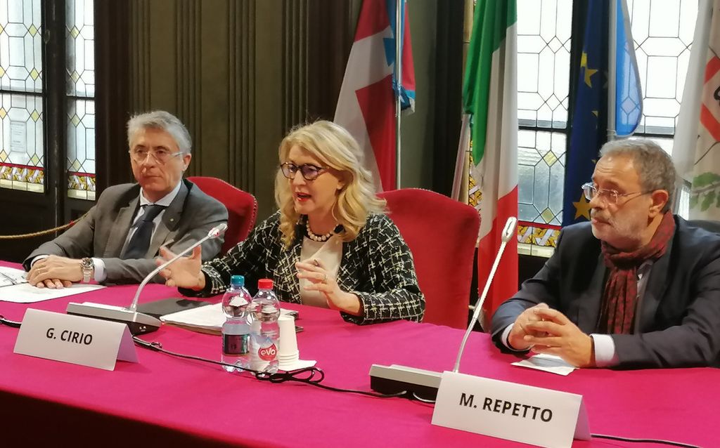 Un momento della presentazione avvenuta questa mattina nel municipio albese. In foto il direttore di Confindustria Cuneo Giuliana Cirio, il professor Maurizio Repetto e il sindaco albese Carlo Bo