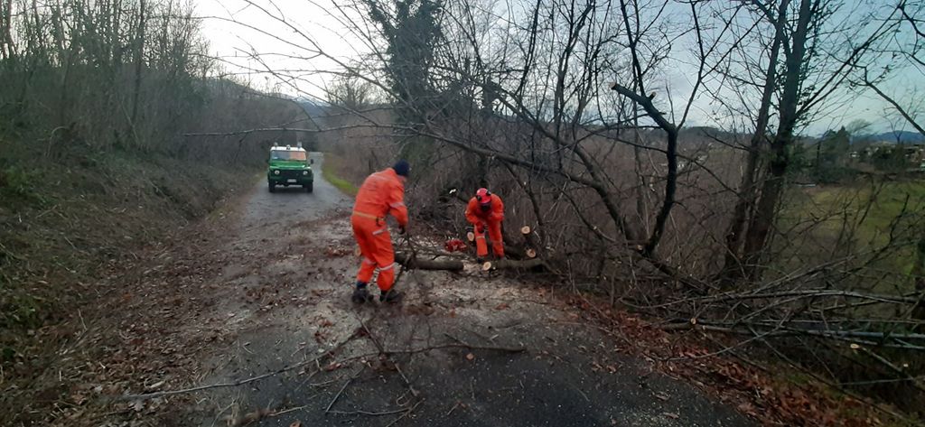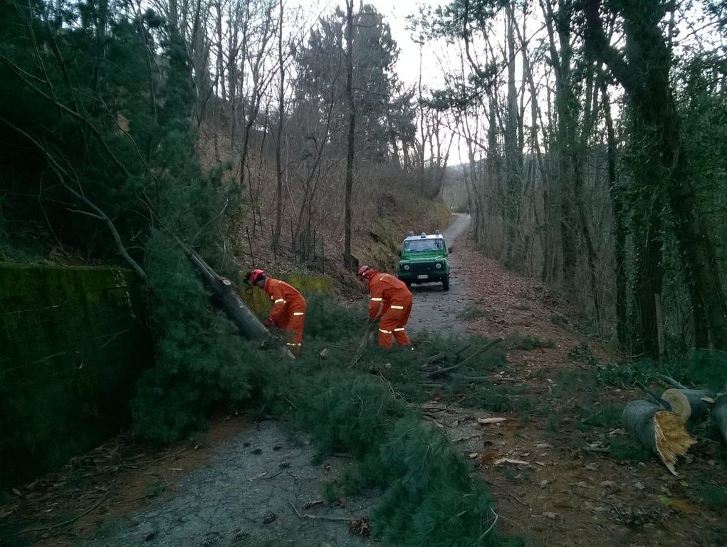 Mentre una squadra era impegnata nell’emergenza della tormenta a Rucas, gli operatori della Protezione civile di Bagnolo Piemonte sono stati allertati per numerosi episodi di caduta alberi sulla collina del paese.