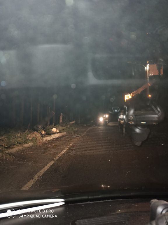 Vento, sulla Bagnolo-Montoso alberi caduti e pali pericolanti: notte di lavoro incessante per Vigili del fuoco, Provincia e ditte specializzate (FOTO)