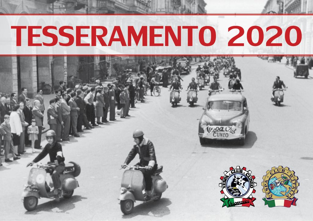 Perchè tesserarsi? "Se sei un Vespista non puoi che iscriverti all’unico Vespa Club di Cuneo affiliato al Vespa Club d’Italia garantendoti, oltre ai gadget nazionali e del Club, preziose convenzioni assicurative e non; inoltre, da quest’anno, ci sarà anche l’importante novità dell’affiliazione ASI con notevoli agevolazioni per gli iscritti".