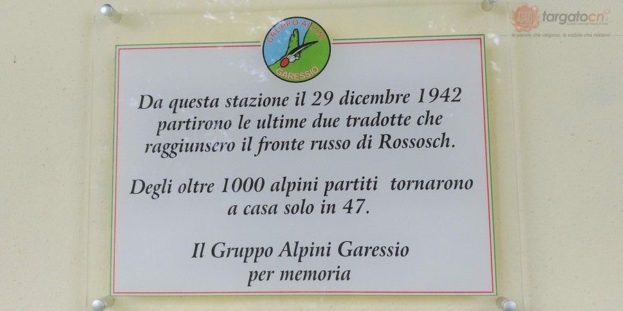 Tra le 14,25 e le 14,55 a Garessio fermata alla stazione e visita al Monumento la Madre dell’Alpino e alla Targa commemorativa. Con la partecipazione di Romana Canavese e Maria Grazia Tornatore.