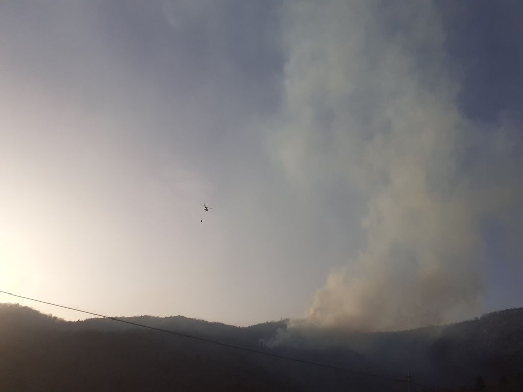 Tre incendi boschivi a Villar San Costanzo sul monte San Bernardo: in corso l'intervento dell'elicottero regionale