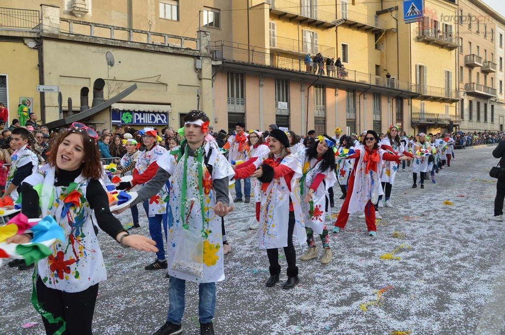 La prima delle due maree colorate a Mondovì è passata. Ne seguirà un'altra domenica prossima (meteo permettendo), al termine della quale saranno proclamati i vincitori delle categorie "Carri" e "Gruppi", con cerimonia di premiazione al "Dancing Christ".