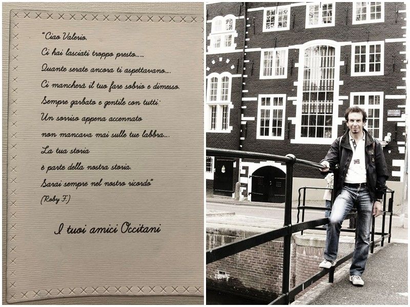 Insieme all'offerta, le figlie hanno ricevuto anche una toccante poesia, che l'associazione desidera proporre come immagine simbolica per l'8 marzo 2020. "Ciao Valerio, ci hai lasciati troppo presto... Quante serate ancora ti aspettavano... Ci mancherà il tuo fare sobrio e dimesso, sempre garbato e gentile con tutti. Un sorriso appena accennato non mancava mai sulle tue labbra... La tua storia è parte della nostra storia. Sarai sempre nel nostro ricordo (Roby F. a nome degli amici occitani di Valerio Pagliano)".
