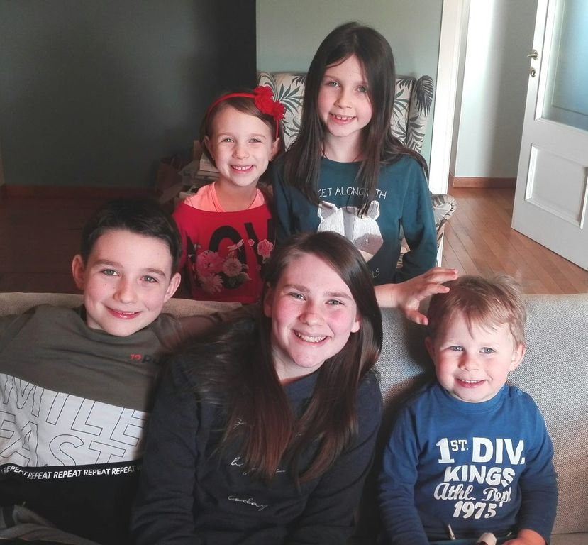 Una colorata e allegra carovana guidata da Chiara Luce, 13 anni, studentessa di 2° media seguita da Michele, 10 anni, in 5° elementare, Marianna, 8 anni, in 3°, Teresa, 6 anni, in 1° e dal piccolo Giacomo, 3 anni appena compiuti, il cocco di casa e l’intrattenitore della famiglia in queste lunghe settimane.