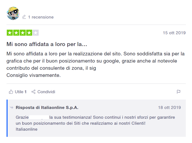 Come si comporta l’azienda in queste circostanze? Italiaonline risponde ad ogni commento e valutazione con il duplice scopo di risolvere la problematica segnalata e di migliorare il proprio operato. Un elemento importante che permette ai clienti di trovare una risposta a tutti i loro dubbi.