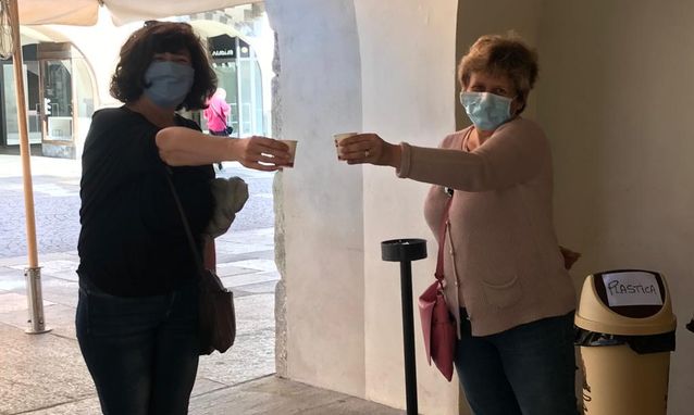 I bar sono finalmente aperti. Si consuma fuori. E c'è tanta gente che si fa fotografare mentre lo sorseggia, perché è un momento da immortalare.