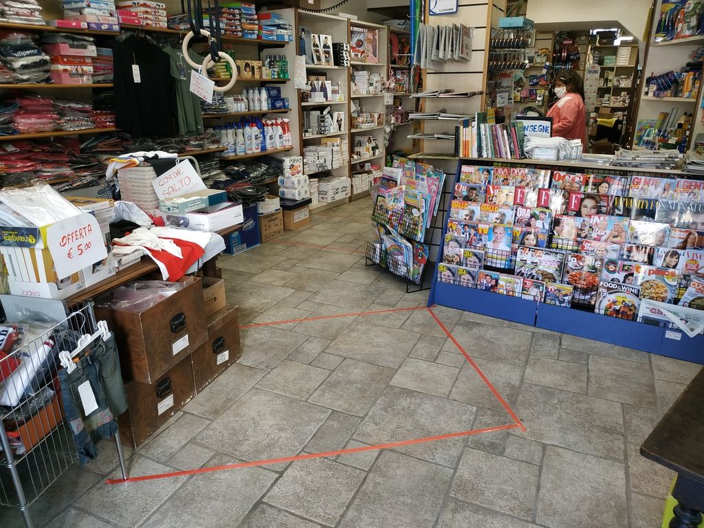 Ed ecco quindi che alcuni negozi ed esercizi commerciali ripartono con la propria attività, tentando in tutti i modi di monitorare i contatti con i clienti e mantenere le distanze di sicurezza; mascherine, guanti e spazi delimitati da nastro adesivo sono presenti sostanzialmente ovunque. Diverse le code di persone davanti alle entrate dei negozi.